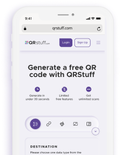 Sign upYour security is our top priority. We are proud to be known as the safest QR code generator, protecting you and your users from malicious links. When you generate QR code with QRStuff, you can be confident that your brand and your customers are in safe hands. From a simple QR tag to an enterprise-level QR code campaign, we provide the secure foundation you need.